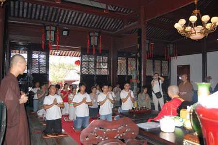 8月8日上午,天童寺举办的“体悟禅慧、和谐人生”为主题的第二届暑假学修活动圆满结束,来自全国各地的男女学员80多人通过礼佛、诵经、听法、行脚、出坡、普茶、传灯等形式,亲身感受到了丛林的禅修生活,增进了对佛法的认识和三宝的理解。