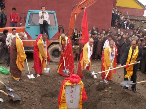 接下来诸山长老、各级领导及四众弟子为大雄宝殿奠基培土。此次奠基法会庄严隆重,圆满吉祥,它标志着大通佛教居士林的一个崭新开端,是佛弟子修学的殊胜道场,堪称大通佛教界乃至青海佛教界的一大盛事!喜事!