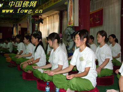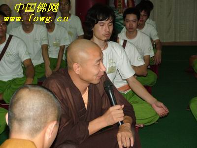 中国佛网讯 据华岩寺报道 2007年8月18日开营仪式之后,下午在华岩寺念佛堂,开展“心灵沙龙 与您互动”和禅修活动。由于营员们对佛教知识的理解深浅不一,“心灵沙龙 与您互动”由各位导师解答营员们的各种疑问,现场气氛相当活跃。禅修活动,则由三和寺定虎法师和华岩寺惟正法师主持。