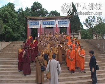 参学一行人拜访云南佛学院,汉传藏传和南传三大语系的僧人在门前合影