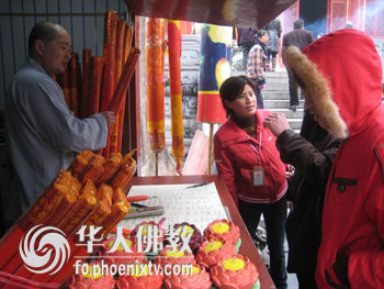 春节期间,前往少林寺的游客很多都要烧一烧高香,为家人祈福。