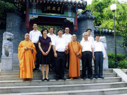 叶小文局长一行和明哲长老在湛山寺菩提院门前合影