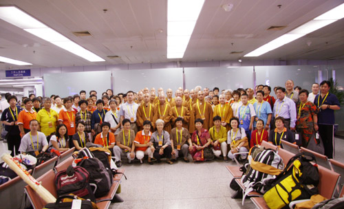 以中国佛教协会会长一诚长老为团长的中国佛教代表团一行112人于27日早晨5点10分到达斯里兰卡机场,受到斯里兰卡佛教界的热情迎接。