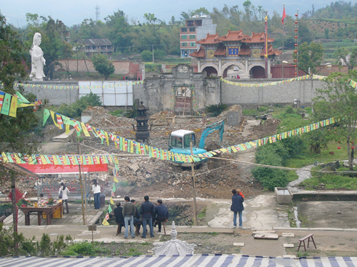 2007年8月1日,福建省福鼎市资国寺隆重举行了大殿破土动工仪式。去年福鼎遭遇史上最强台风“桑美”侵袭,因资国寺的地理位置正处于迎风口,所以大殿、天王殿、法堂等老式建筑无法幸免于难,其余如山门、围墙一类建筑也遭坍塌,另如一些字画、文物也受破坏,给资国寺造成了无可估价的损失。在灾难面前,贤志法师鼓励寺院僧众生产自救。自己即奔赴灾区,给受灾群众送温暖,迎得了福鼎市委及统战部门的高度赞扬。灾后又多方奔走相告,感来十方善信,慷慨解囊。历经几个月的募捐、筹备、设计等工作,已于8月1日上午在原址上破土动工,大殿的主体部分预计四个月即可完工。相信不久后,我们又能看到一个崭新的资国寺,展示在我们的眼前.