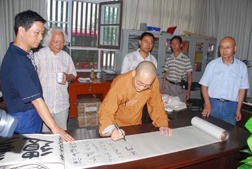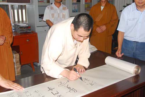 贤空法师在百米长卷上签名