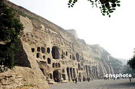 云冈石窟位于山西大同市西郊武周山北崖,石窟依山开凿,东西绵延1000米。 中新社发 泰峰 摄