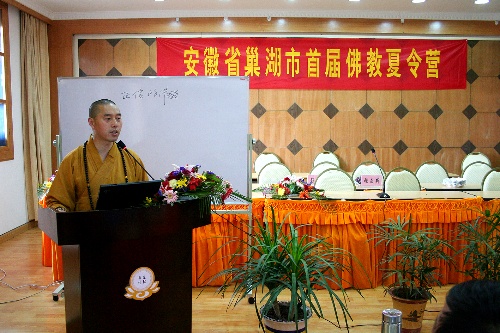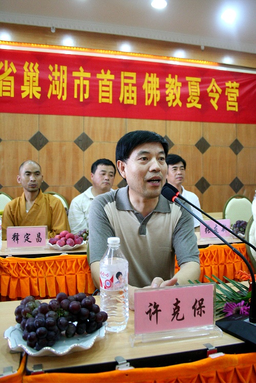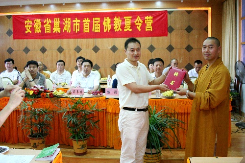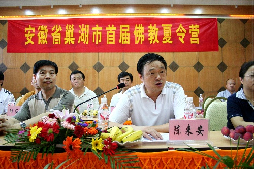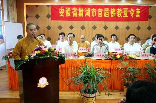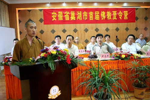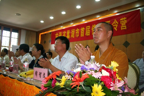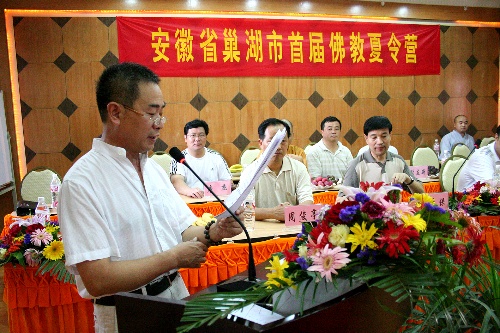 巢湖市佛教协会秘书长张佑保主持开营仪式