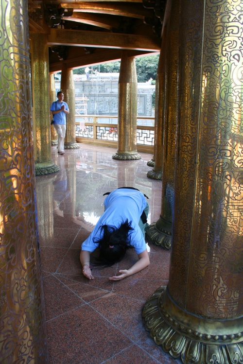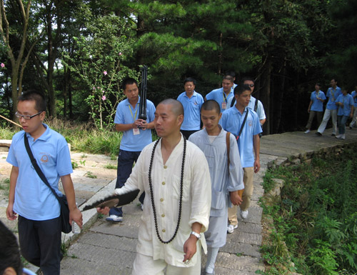 八月五日上午,营员们朝拜了九华山百岁宫全身舍利之应身菩萨、五百罗汉殿、回香阁和万佛塔,并观赏了位于九华山花台景区的天然睡佛。