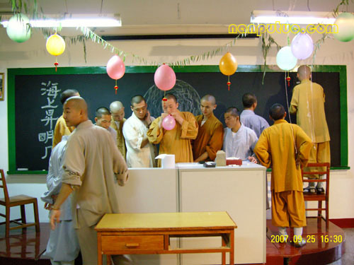 “海上生明月,天涯共此时”,9月25日,时值中秋佳节,闽南佛学院男女学僧聚集于各班教室,举办联欢晚会喜迎中秋。晚会现场彩球飘扬,花团锦簇;节目精彩纷呈,欢声如海,掌声如潮。
