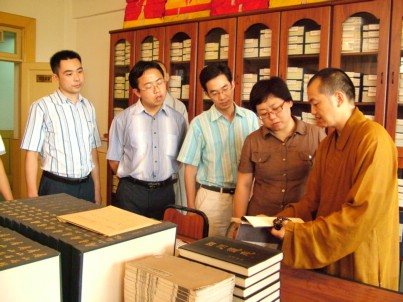 中国佛网9月5日消息 华岩寺报道: 9月4日下午,共青团中央青农部裴处长一行参观华岩寺,受到方丈道坚法师的热情接待。 在道坚法师的带领下,裴处长一行参观了弘法楼、觉初佛教图书馆、华岩佛教艺术馆、重庆佛学院、即将重修的华岩广场、大雄宝殿等。裴处长表示佛教具有教化人心,和谐社会的积极作用,并对道坚法师的弘法理念以及创办的弘法机构表示赞同。参观华岩觉初佛教图书馆,右一为道坚法师,右二为裴处长