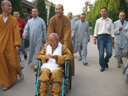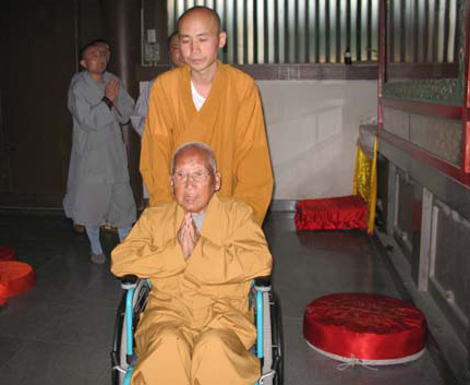 9月22日下午,原陕西省佛教协会名誉会长、兴教寺方丈常明长老到法门寺参拜佛指舍利。