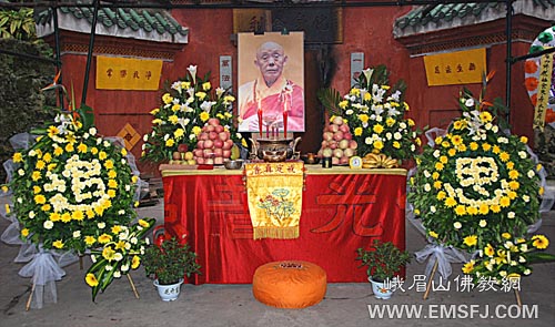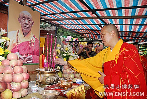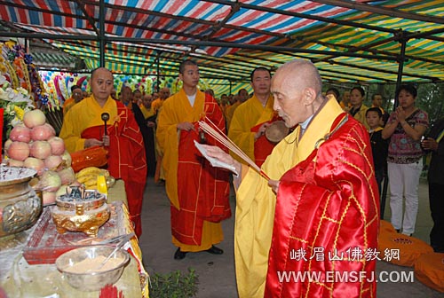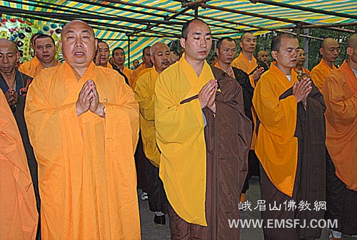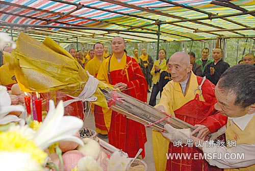 法会依照佛教仪规如法如律,由报国寺年届九旬的常静长老主法,峨眉山佛教协会会长、报国寺方丈永寿法师、副会长心定法师、果正法师、秘书长宏开法师与峨眉山150多位法师、200多位信众参加了追思荼毗法会。
