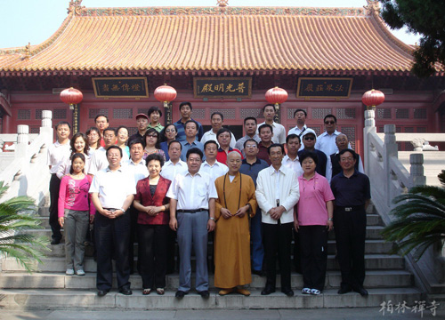 刘部长和付部长一行先后参观了赵州祖师塔、寺院各殿堂、河北省佛学院,最后在普光明殿前合影留念。