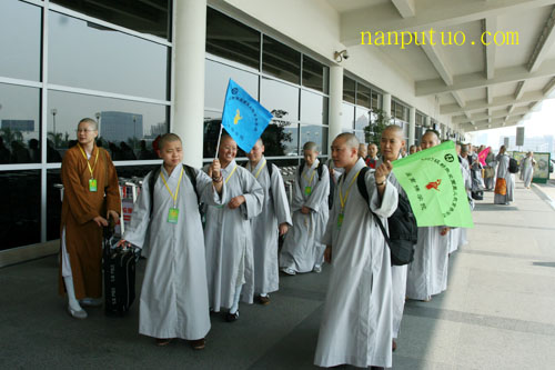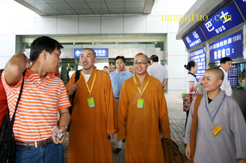 湖南省佛协秘书长坚愿法师于机场迎接参学团一行