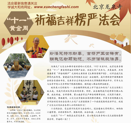 北京龙泉寺"十一"举办祈福吉祥楞严法会通告