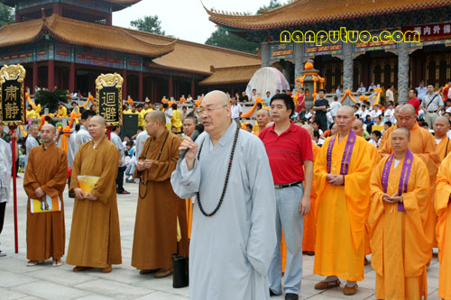 2007年9月15日9时30分,“海内外佛教界公祭炎帝祈福世界和谐大典”彩排仪式在炎帝陵神农大殿前隆重举行。中国佛教协会副会长、湖南省佛教协会会长、闽院院长圣辉大和尚亲临现场指挥,并给参加彩排的全体成员作了重要开示。
