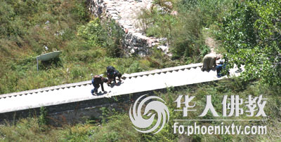 去佛母洞前,普润师说,上佛母洞要爬山的,一千多级台阶,我们一听就傻了。太阳很大,我们已经走了一个上午,昨夜又是凌晨才睡……正在喊天问地之际,普润师又说:“有一条消防通道可以到达山顶,这条路不对外,一般人不知道的,这也是五台山最险的一条路。”闻此,众人皆长出了一口气,——好嘛,总算可以不用爬山了,管它险不险,就走消防通道了。