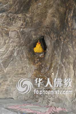 普润师开车,直奔佛母洞。真别说,那条路还不是一般的险,坡度之大难以想象,一个接一个胳膊肘弯,路况之差也难以言说,估计山上有事,用这条消防通道救援有点玄,当然,怎么也比徒步上山要快。到达佛母洞时,正值中午,高悬的日头火辣辣的,趴在山门外的围墙上惬意地俯瞰,——天哪,那是什么?远远的山腰上,几个一步一叩首的身影正在缓缓地向上攀登。我感到有点眩晕,不知是烈日下的台阶有些反光,还是看到他们匍匐在台阶上的动作有些缺氧,总之,我久久地注视着他们,看着他们向前,合掌,弯腰,下跪,礼拜,起身,再向前,再礼拜,一位出家师父在前面跪拜,四位在家弟子在后跟随,他们的动作很统一,起伏前移,如电影中的动画特技,飘逸、潇洒。我不知道他们是谁?他们在想什么?但有一点可以肯定,他们是来朝拜佛母洞的。我回过身,仰望着面前的山崖,心想:这是怎样的一个圣迹,值得这些信众如此不畏艰辛,如此彻底地奉献全部。