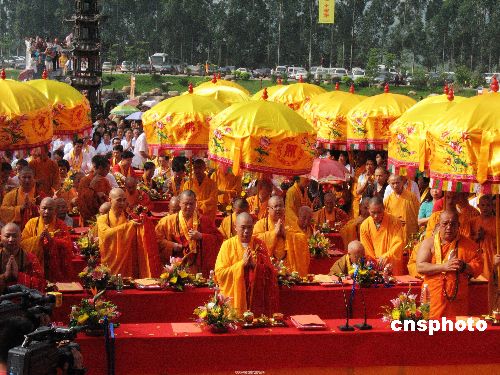 广东省佛教协会副会长、韶关南华禅寺住持释传正大师主持了开光仪式。来自中国内地及港、澳、台地区的诸山长老及信男善女四千多人,共同见证了佛教界这一盛事。