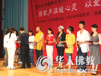 今天举行的《从心开始》音乐专辑发布会上,同时举行了向中华慈善总会“大学生意外伤害救助基金”的捐赠仪式,这是既今年5月8日救助先心病儿童慈善义演之后,由河北柏林禅寺发起的又一善举。
