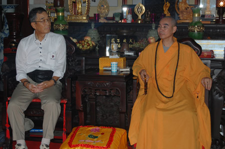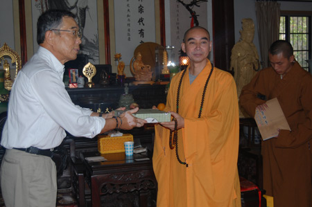 代表团长上坂弘对诚信法师的热情接待表示感谢并致谢辞。随后双方互赠礼物以表谢意。