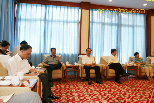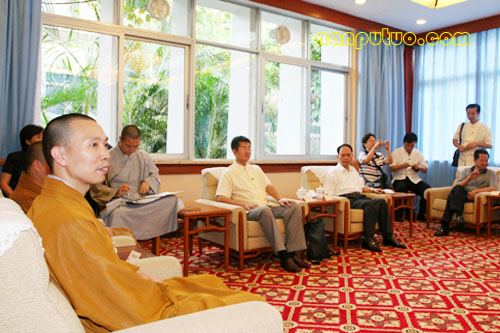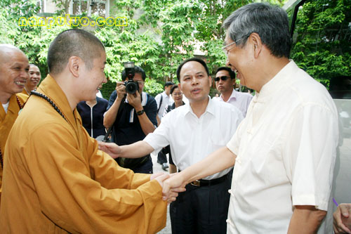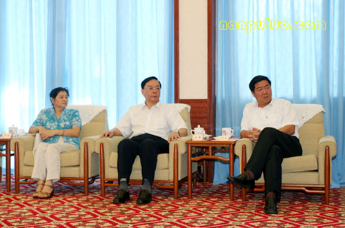 2007年9月23日下午4时,全国人大常委副委员长许嘉璐携同夫人在福建省人大常委会副主任林强,副主任夫人林风女士以及厦门市委书记何立峰,厦门人大常委会副主任杜明聪、陈昭扬,厦门宗教局局长曾文瑛等人的陪同下,来到南普陀寺普照楼,与我寺方丈则悟大和尚、厦门佛协常务副会长定恒法师、闽院图书馆馆长了法法师、教务长传明法师、南普陀副寺兼大知客德煌法师等亲切座谈。