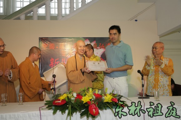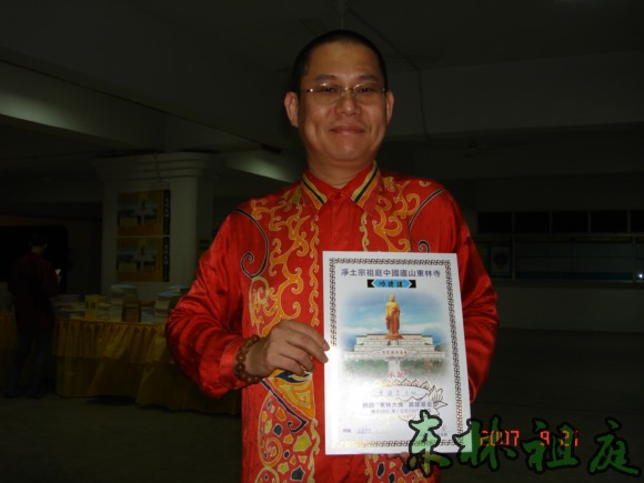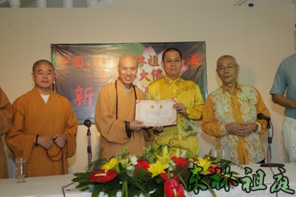 黄志源居士在接受聘书。