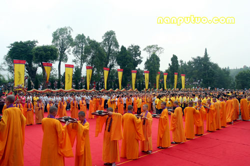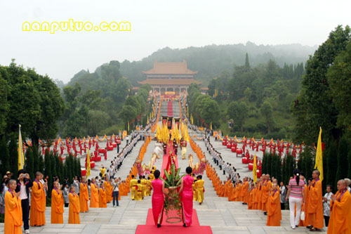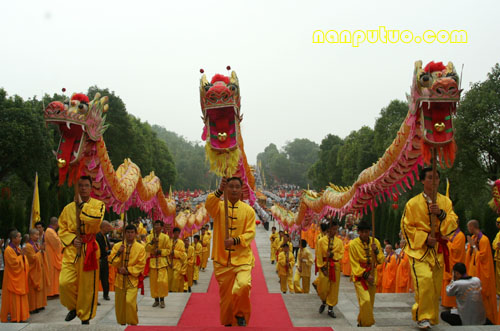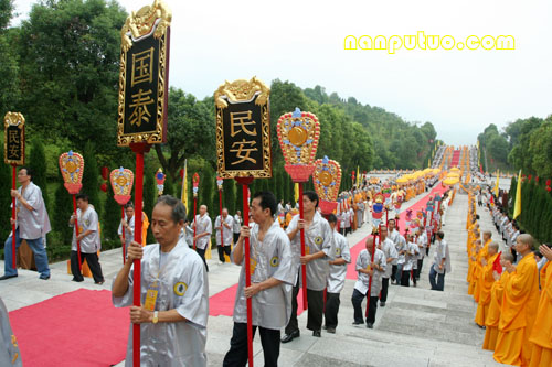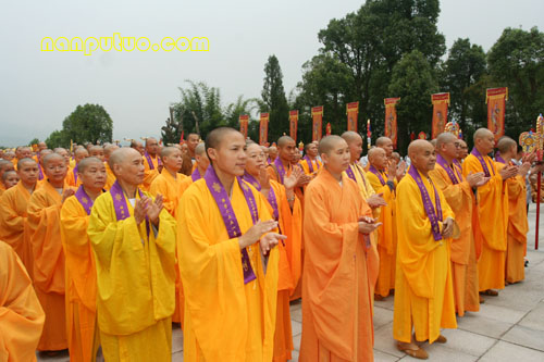 为了促进祖国的和平统一,民族的昌盛与繁荣,人民的幸福,发扬佛教爱国爱教的优良传统,2007年9月16日上午9时09分,由湖南省佛教协会发起的“海内外佛教界公祭炎帝祈福世界和谐大典”在湖南炎帝陵隆重举行,佛教界近1000名僧众和社会名流以及近万名信众参加了本次大典。