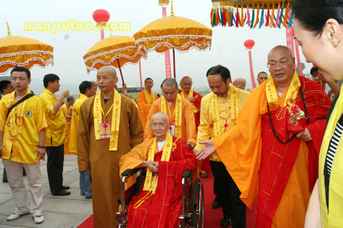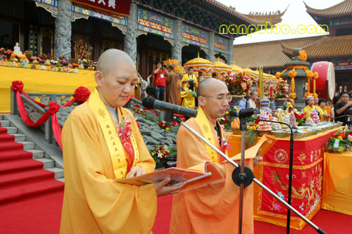 参加大典的诸山长老、大德法师有:全国政协常委、中国宗教和平委员会常务副主席、中国佛教协会副会长、湖南省佛教协会会长圣辉大和尚;中国佛教协会咨议委员会副主任、重庆市佛教协会会长惟贤长老;新加坡佛教协会主席光明山普觉禅寺方丈广声大和尚;世佛联副秘书长、印尼佛教僧伽联合会副会长兼秘书长慧雄法师;香港三德弘法中心主席净雄法师;台湾金门佛教会理事长性海法师;世界佛教发展协会、台北佛教联合会莲海法师;台湾澎湖佛教会理事长心舫法师;澳门无量寺功德林主持戒晟法师;中国佛教协会常务理事、天津佛教协会副会长妙贤法师;安徽九华山百岁宫慧庆大和尚;北京灵光寺方丈常藏法师;福建厦门南普陀寺方丈则悟大和尚;福建泉州南少林寺住持常定法师以及陈淑琴居士、张子英居士、曾丽云居士、张志凯先生俞成东居士、吕红霞居士、李焕炎先生、美国禅净学会主席、世界关公文化促进会主席雷震寰居士等。