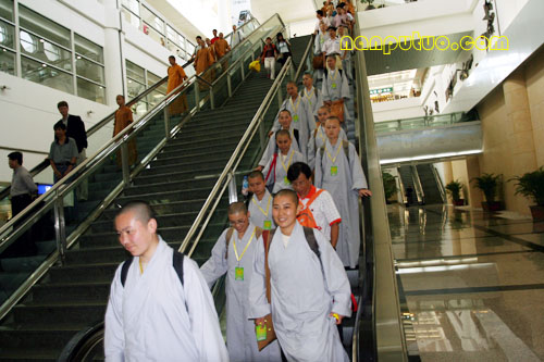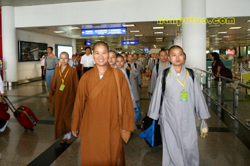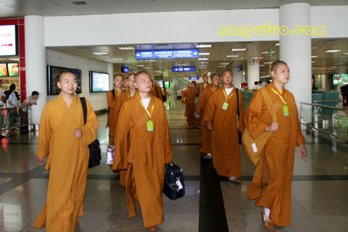 9月18日,中国佛教协会副会长、闽南佛学院院长圣辉大和尚,闽院办公室主任净心法师等亲临长沙黄花机场为闽院2007级新生爱国主义教育参学团送行。在闽院教导长达源法师、办公室副主任界淞法师、副教导长超波法师以及几位班主任法师的带领下,全体学员顺利返回厦门,结束了为期五天的参学之旅。院长办公室延明法师、闽院教导处达云法师等前往机场,喜迎大家的归来。
