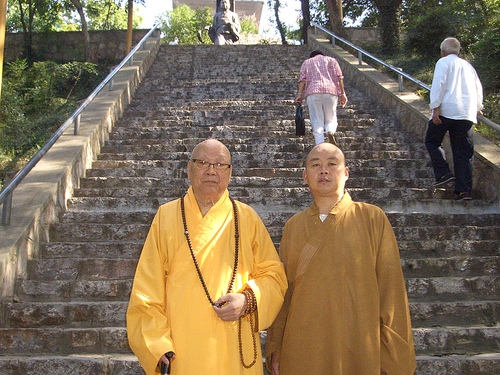 9月12日,台湾净业寺82岁高龄的宽道长老参访南京玄奘寺,与玄奘寺住持传真法师一起游览了九华山风景区和玄奘寺。