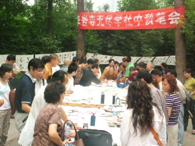 “书能安神,墨能洗心”,中秋团圆之际,华岩寺无尽学社主办“揭牌仪式暨2007中秋笔会”标志着无尽学社的正式成立,对于推动佛教文化和书画艺术的进一步发扬光大,实现道坚法师的“敦煌梦想”又迈出了坚实的一步。