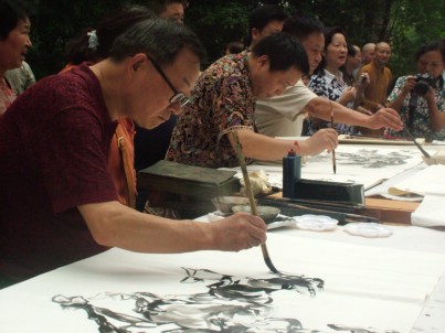 重庆市文化局创作室、无尽学社副社长张昌达先生,重庆市作协、书协会员,沙坪书画研究院副院长、重庆诗词学会副秘书长、重庆市楹联学会副会长、无尽学社副社长朱墨,重庆市教委书法教育研究会理事、无尽学社副社长邱朝益,重庆市美术家协会会员、重庆市书法家协会会员、北京民族画院理事、重庆沙坪书画院副院长、嘉陵江书画院国画家、无尽学社副社长郭俊等70多名艺术界的人士共同参加了此次接牌仪式暨中秋笔会。