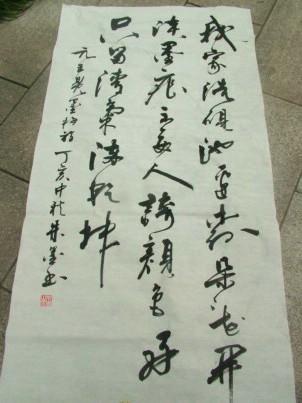 下午笔会正式开始,各位艺术家挥毫泼墨, 各展才情,留下了一幅幅艺术珍品。据了解,所有现场作品都将留在华岩寺无尽学社。著名书法家朱墨现场所书两幅书法,功底深厚,别具匠心,得到大家广泛关注。华岩寺方丈、华岩无尽学社社长道坚法师也在繁忙之余抽出时间赶到笔会现场,与艺术家们广泛接触,深入交流。