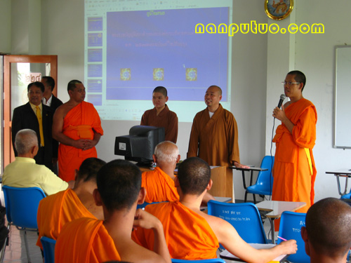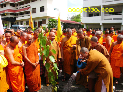9月18日上午十一点,闽院代表团一行到达了离曼谷四个半小时车程之远的朱拉隆功大学乐差育他亚赖大学分校武哩喃拍菩他曼考甲隆寺院参观,受到全校师生的热烈欢迎。副校长Phra Phammoli特意请了一位叫宗义老师为双方的交流作翻译。双方代表在大讲堂讲过话,各自介绍学院的情况后,举行了菩提树种植活动。随后参观了他们的校舍,传明法师为毕业班僧员做了随机讲座,为他们解答了有关大乘佛教戒律的持守问题。最后,代表团一行和全校师生合影留念。