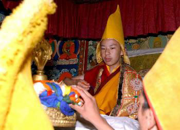 “第十一世班禅法驾普宁寺展”日前在河北省承德市普宁寺西配殿向游人展出。