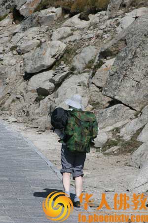 今天在北台漫长陡峭的山路上,发现几位徒步朝台的勇士,其中一位江苏的出家师父和四位北京来的徒步爱好者,他们早上6点半从中台出发,估计下午可以抵达北台顶,之后他们还将继续完成其他台顶的朝圣。