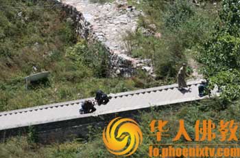 下午在佛母洞,我们看到了令人感动的一幕,四位辽宁来的居士在他们的出家师父带领下,一步一叩首,一步一跪拜地朝拜佛母洞,1600多级台阶,他们从上午九点一直磕到下午,烈日下的台阶十分坚硬,高耸的山峰一直在引导她们,这是怎样的一种精神,这是怎样的一种信仰呀。