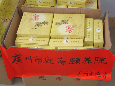 9月24日上午,光孝寺义工团代表一行到广州市康寿颐养院及广州市老人院,向老人们送上中秋佳节的问候及菩提甘露坊自制的素月饼。