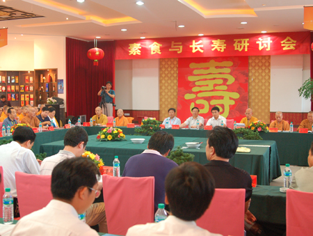 研讨会上,省佛教协会副会长、无锡祥符寺无相法师,省佛教协会副会长、镇江金山江天禅寺心澄法师,南通市佛教协会副会长、观音山太平寺文定法师及如皋市长寿研讨会代表分别作交流发言,畅谈各自的素食与长寿之道。