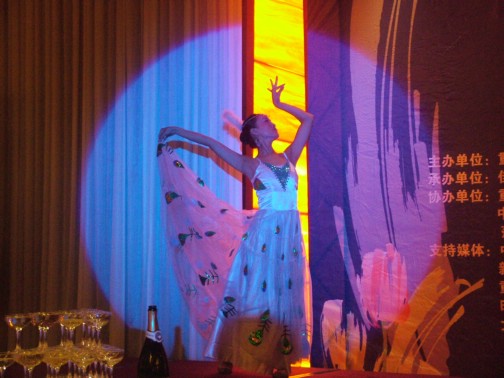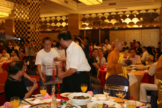 晚宴现场气氛热烈,在心灵音乐歌手陈青,著名组合高原红,千手观音舞蹈演员骆丽娟以及重庆师范大学特殊教育学院聋人大学生和重庆向阳儿童发展中心智力残疾学员们的倾情义演下,在重庆众多企业家的爱心支持下,通过拍卖道坚法师随身携带的佛珠,海内外高僧开光加持的庄严香炉,具有无上珍藏价值的贝叶经等,共收到捐助现金200790元,这些善款将由华岩文教基金会全部用于慈善公益事业。