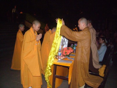 华岩寺方丈、重庆佛学院常务副院长道坚法师等接受学僧们敬献的哈达