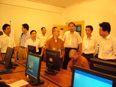 翁杰明部长首先参观了即将归还华岩寺作重庆佛学院女众部道场的原华岩小学,并表示要支持佛学院的发展。随后,翁部长一行在道坚法师的陪同下参观了华岩寺弘法楼、般若讲堂、华岩英才传习舍、华岩佛教艺术展览馆、重庆佛学院、觉初佛教图书馆等。
