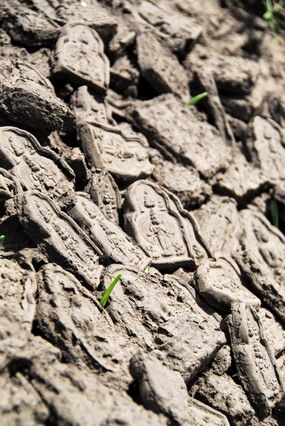 开光后的擦擦有些便直接供奉在寺院,堆放在山洞里、山上的巨石旁、路口的玛尼堆处,常年与风马旗、玛尼石刻、经幡在一起,享受着朝圣者的香火和顶礼。有些便直接堆放在一起,斗转星移,就积成巨大的擦擦堆。