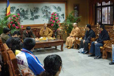 27日下午3时,中国青年报驻全国部分省市记者站站长、记者一行29人到法门寺参观,法门寺智超法师、贤空法师、洪利法师热情接待并举行了座谈会。