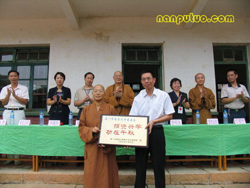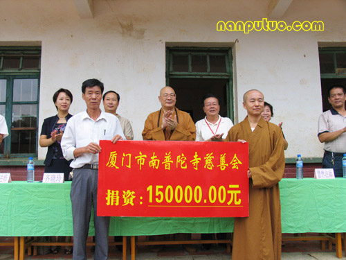 10月9日上午9时,南普陀寺慈善会会长圣辉大和尚率领慧然法师、普陀法师、德鸣法师、定通法师及静仁法师一行,前往厦门翔安区许厝小学参加捐建教学楼仪式,此次本会向许厝小学捐赠15万元建校款。