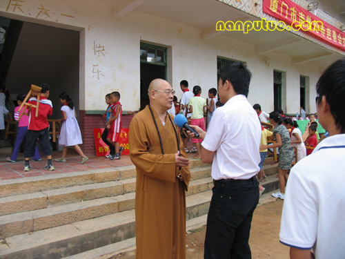 会后,在各级领导的陪同下,会长圣辉大和尚以及各位法师参观了新校址。圣辉大和尚还接受了电视台的采访,表达了佛教慈悲济世的心声。