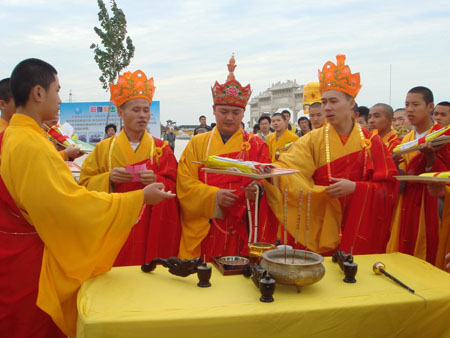 为庆祝建国58周年 天津东五台寺举行水陆空大法会