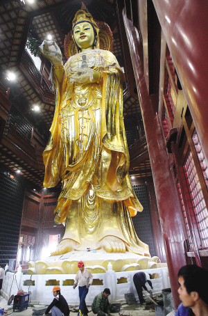 拥有国内最高的室内观音像、国内最大的海岛观音壁,首创了铜腔皮鼓、唐代第一声第一律铜钟,位于阳澄半岛的重元寺尚未完全揭开神秘的面纱,就已牢牢吸引了众多关注的目光。11月17日,重元寺将正式落成开光。前天,记者提前对这座占地达200亩的寺院进行了一番“探秘”。
