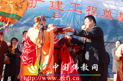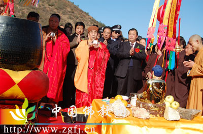 10月19日即九月九重阳节,张家口市赐儿山云泉禅寺抢修、扩建工程奠基仪式正式启动。辽宁省圆山法师、云泉禅寺方丈果兰法师主持仪式。张家口市郑市长,河北省佛教协会秘书长肖占军、张家口市佛教协会等各界佛教人士及社会力量捐建者参加了奠基仪式并在大会上致词。